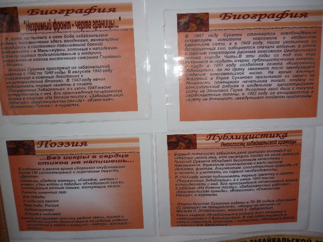 Экспозиция школьного музея "Жизнь и творчество Николая Суханова"
